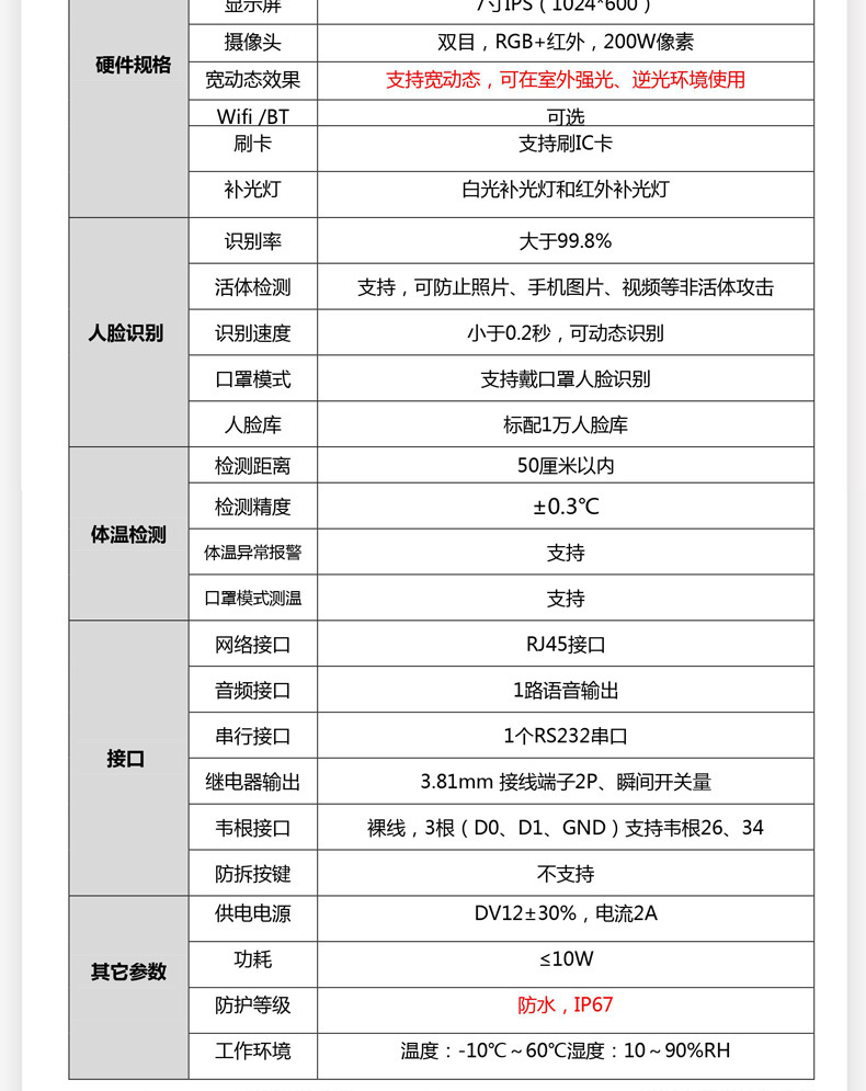 (*由于產(chǎn)品升級或其他原因,明創(chuàng)IDR-R108人臉識別測溫機產(chǎn)品實際參數(shù)有可能變更,以實際產(chǎn)品為準。本文中的所有陳述、信息和建議也不構(gòu)成任何明示或暗示的擔保)