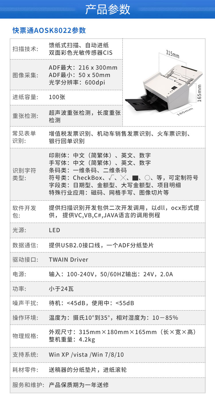 (*由于產品升級或其他原因,奧普思凱票總管掃描儀產品實際參數有可能變更,以實際產品為準。本文中的所有陳述、信息和建議也不構成任何明示或暗示的擔保)