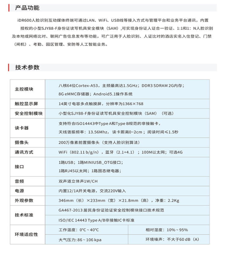 (*由于產(chǎn)品升級或其他原因,精倫IDR600人臉識別一體機產(chǎn)品實際參數(shù)有可能變更,以實際產(chǎn)品為準。本文中的所有陳述、信息和建議也不構(gòu)成任何明示或暗示的擔(dān)保)
