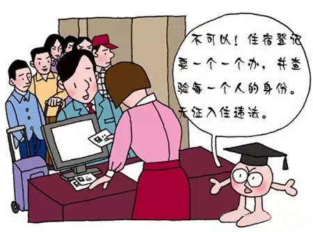 無論是星級賓館酒店,還是普通的招待所、旅館,旅客辦理入住登記手續時都要求查驗旅客的身份證明。根據國務院《旅館業治安管理辦法》相關規定: